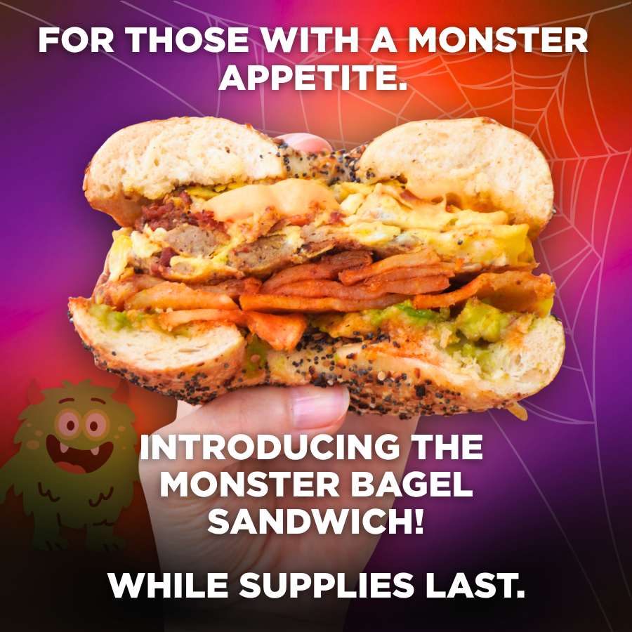 A new breakfast creation has come to life for all you ghouls and bagel lovers craving something bold. Meet the Monster Bagel Sandwich, our latest limited-time favorite made for big appetites and serious breakfast fans! It’s THB’s newest obsession, and it’s here to make your mornings a little more thrilling.
